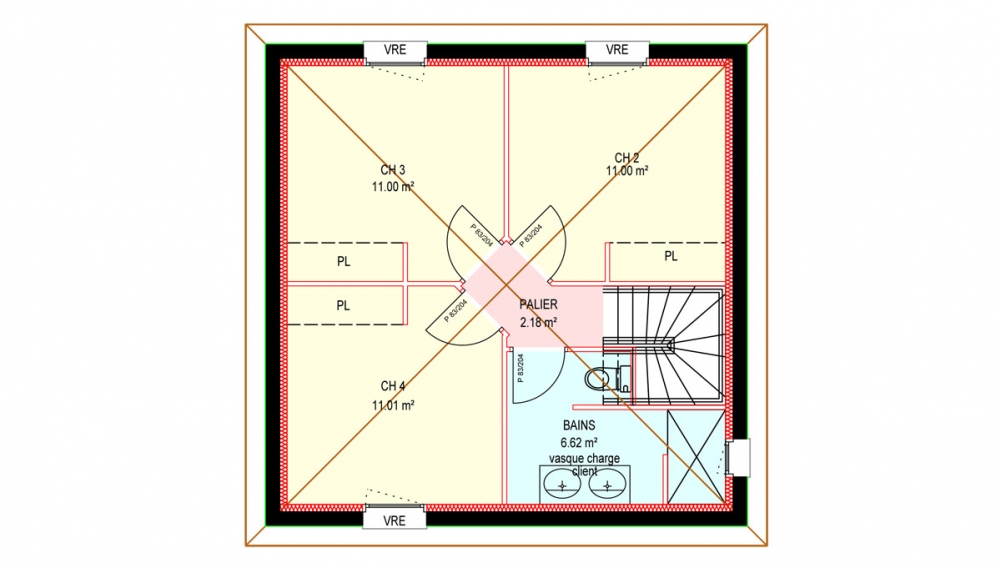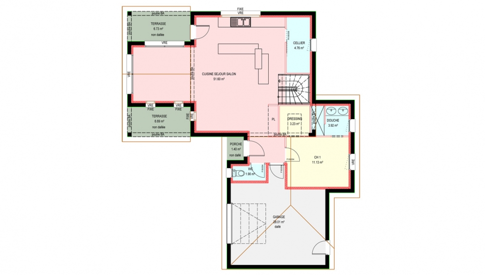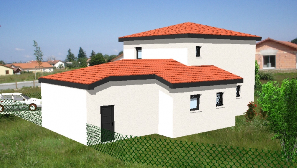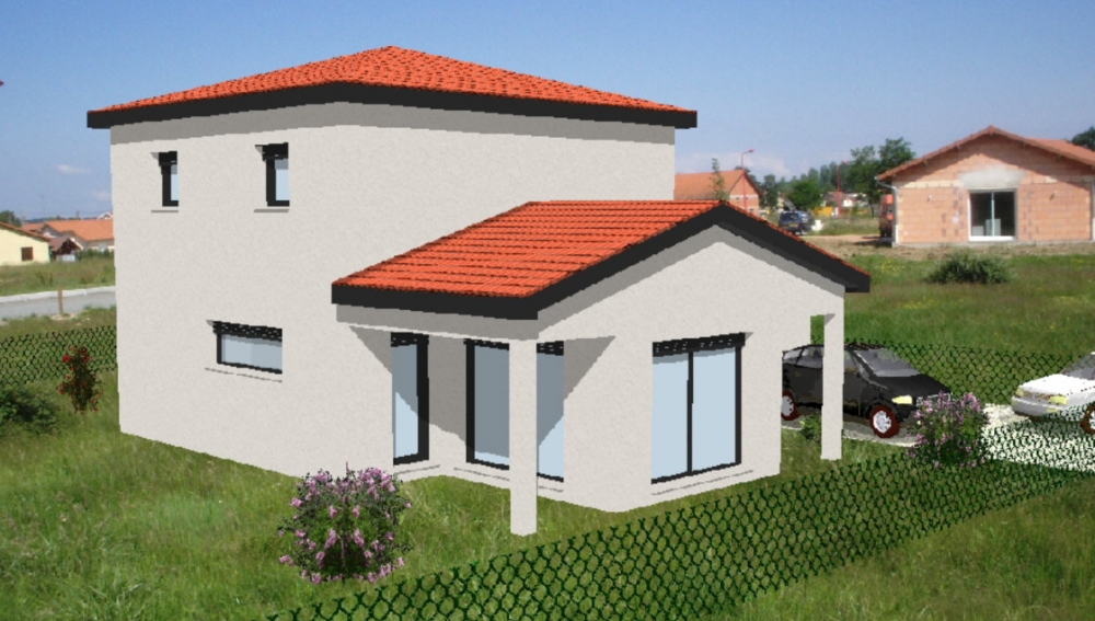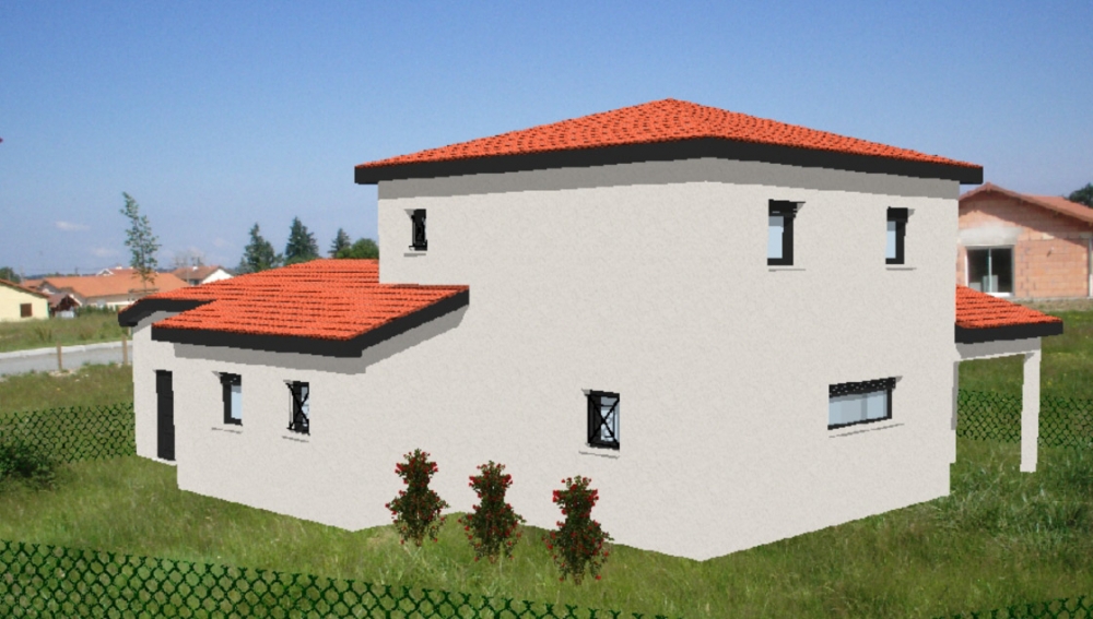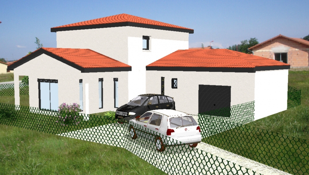 Maison avec étage comportant 4 chambres, un dressing, 2 salles de bains, 2 WC, un cellier, une cuisine ouverte sur un grand séjour, 2 terrasse, un porche, un hall d'entrée et un garage.