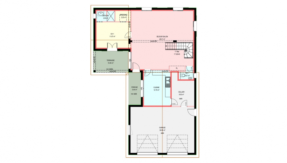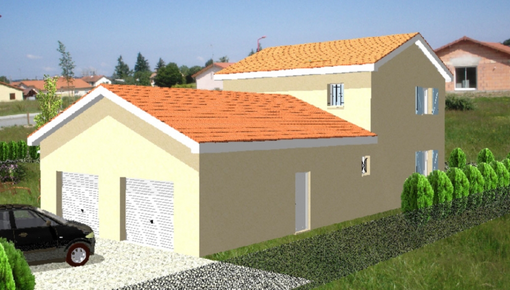 Maison avec étage comportant 4 chambres, 2 salles de bain, 2 WC, une cuisine indépendante, un grand séjour, un cellier, un porche, une terrasse et un grand garage.