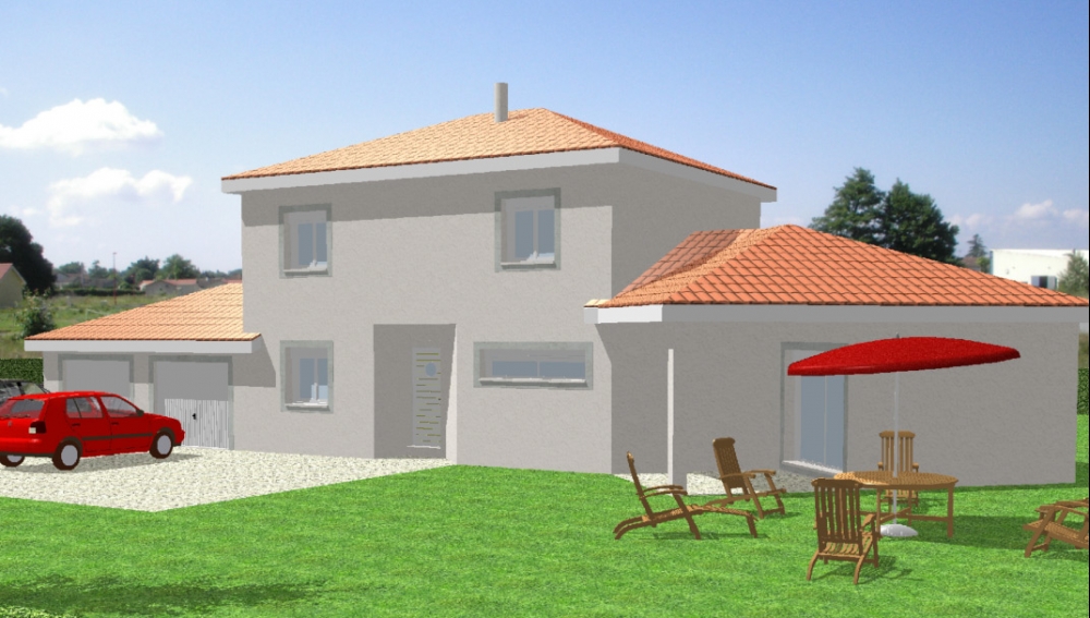 Maison avec étage comportant 3 chambres et un bureau, un dressing, 2 WC, une buanderie, une cuisine ouverte sur un très grand séjour, un hall d'entrée, un porche, une terrasse et un grand garage.
