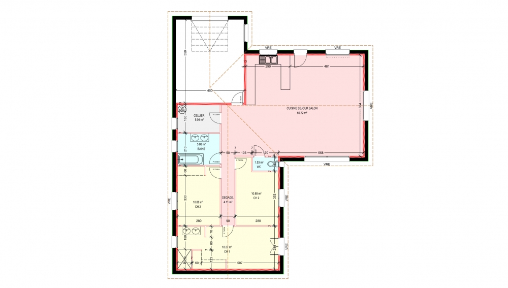 Maisons plain pied 3 chambres