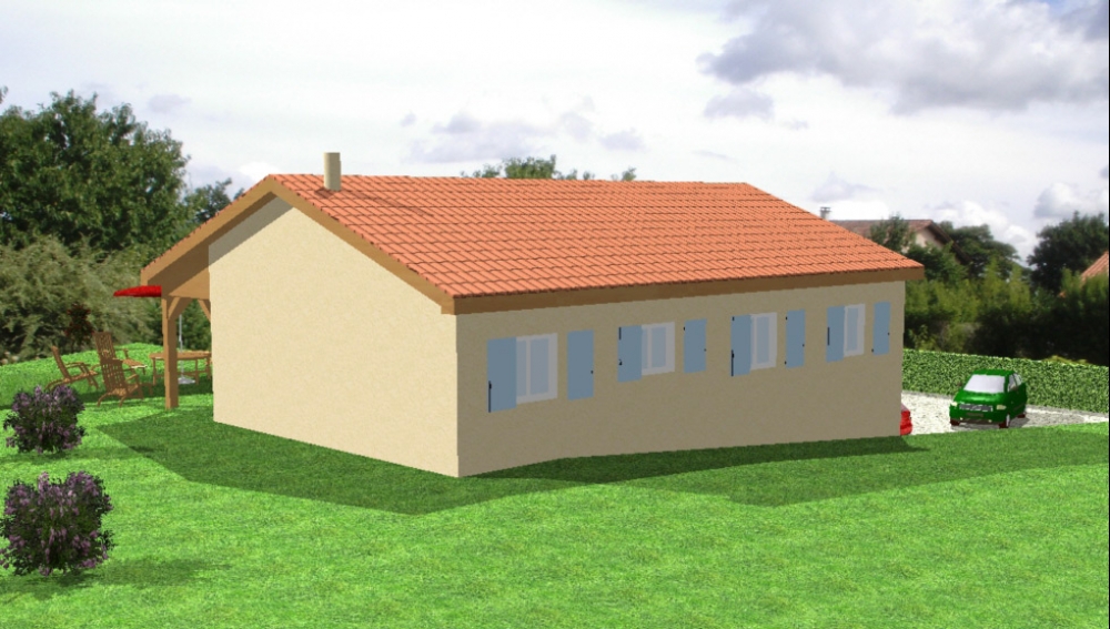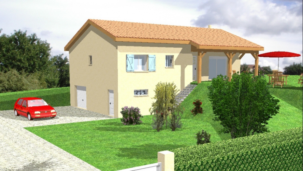 Maison sur sous-sol avec 3 chambres, un bureau atypique, une cuisine indépendante, un grand séjour, une terrasse et un très grand garage en sous-sol.